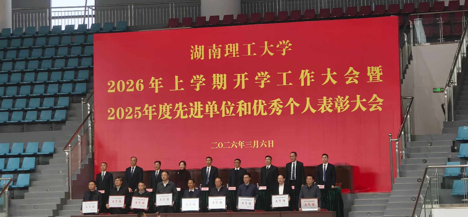 3月6日,湖南理工大学2026年上学期开学工作大会暨2025年度先进单位和优秀个人表彰大会顺利召开,402永利集团凭借扎实的工作成效与突出的发展业绩,一举荣获“2025年度二级单位目标管理考核A类单位”“2025年度党建与思想政治工作先进单位”两项殊荣,充分彰显了学院的综合实力,是学校对学院全年工作的高度肯定。