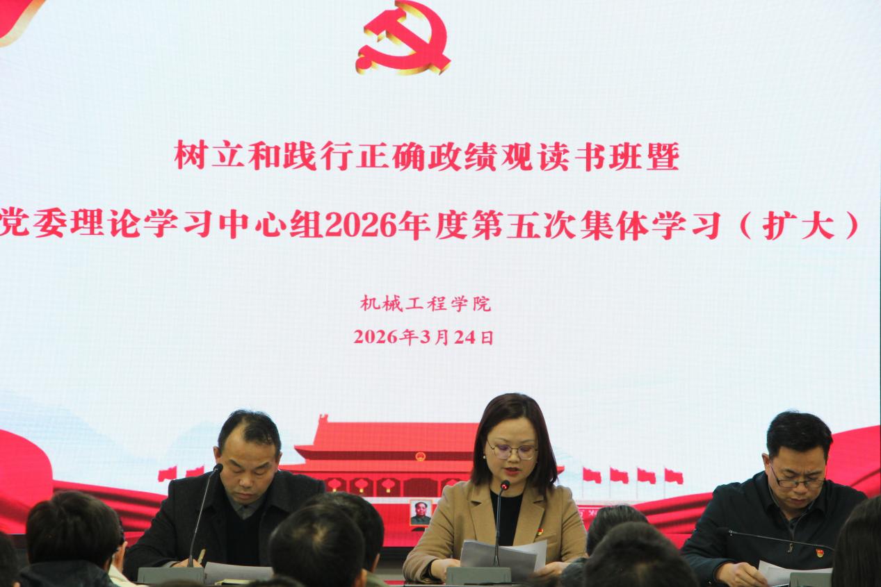 3月24日下午,402永利集团在16302会议室举行树立和践行正确政绩观读书班暨党委理论学习中心组2026年度第五次集体学习(扩大)会议。会议由徐丹主持,党委理论学习中心组成员、全体教师、学生党员参会。