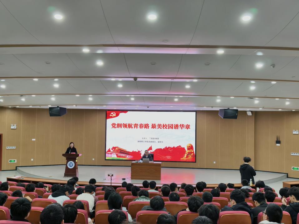 10月21日下午,402永利集团于17118报告厅开展53期入党积极分子培训第一课,此次党课以“党纲领航青春路 最美校园谱华章”为主题,校党委委员、副校长丁跃浇主讲,53期入党积极分子、2025级全体新生参加。