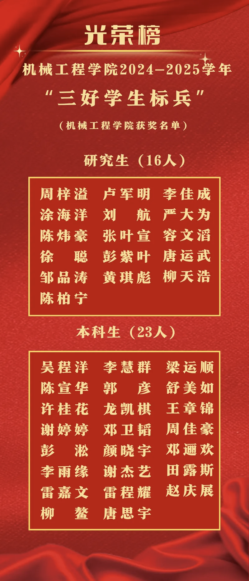 “三好学生”这份荣誉,是对“品德优、学业精、体魄健”的极致认可;而“三好学生标兵”,更是其中的标杆人物——他们思想有高度、品行有温度、协作有力度、成绩有亮度,是同学们成长路上最鲜活的“参照系”。现在,机械君就带大家走进2024-2025年度402永利集团的三好学生标兵与三好学生群体!