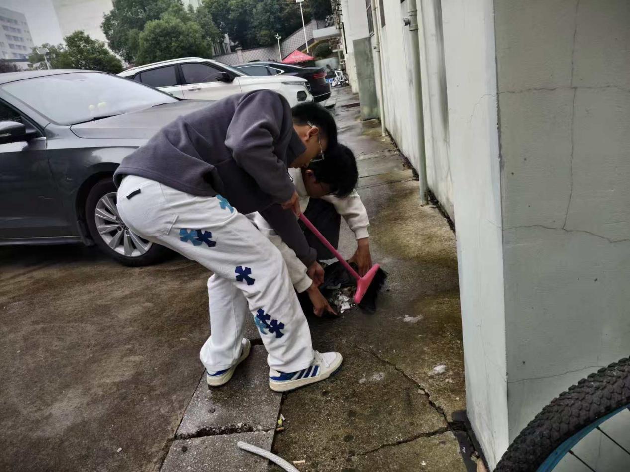 每周二和周五是固定的劳动日,新生们以班级为单位分组行动,迅速投入到各个责任区域。在16号、18号教学楼内,同学们分工协作,有的细致清扫教室地面的纸屑与灰尘,有的认真擦拭黑板、讲台及课桌椅,有的对多媒体设备、门窗玻璃等进行全面清洁,不放过任何一个卫生死角;在教学楼周边及20号宿舍楼周边区域,大家手持工具,有条不紊地清理绿化带内的杂草、枯枝和白色垃圾,规范摆放乱停乱放的共享单车,细致擦拭公共区域的栏杆与指示牌。劳动过程中,同学们热情高涨、默契配合,不怕脏、不怕累,汗水浸湿了衣衫却依旧干劲十足,现场呈现出一派热火朝天的劳动景象。辅导员全程跟班指导,及时解决劳动中遇到的问题,与同学们一同参与劳动,营造了师生同心、共建美丽校园的良好氛围。